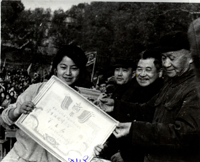 1981年拍摄 高翔副院长给第七届运动会优秀运动员颁发竞赛奖状