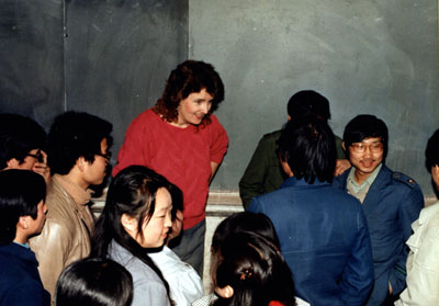 1988年5月6日拍摄 美国艺术家小组人员为本科生讲课