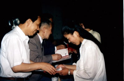 1994.7.3 党委副书记张兆华等领导在94届毕业典礼上为毕业生颁发证书